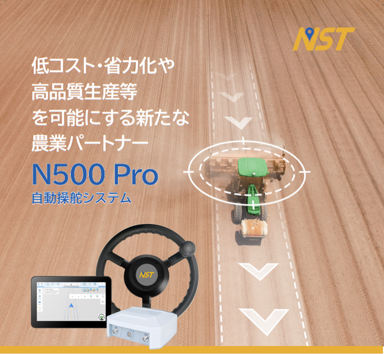 ・N500Proは、既存の農業機械に後付けできる自動操舵システムです。高精度GNSS/IMU技術を採用し、ほ場作業の効率化・省人化・作業精度向上を支援します。