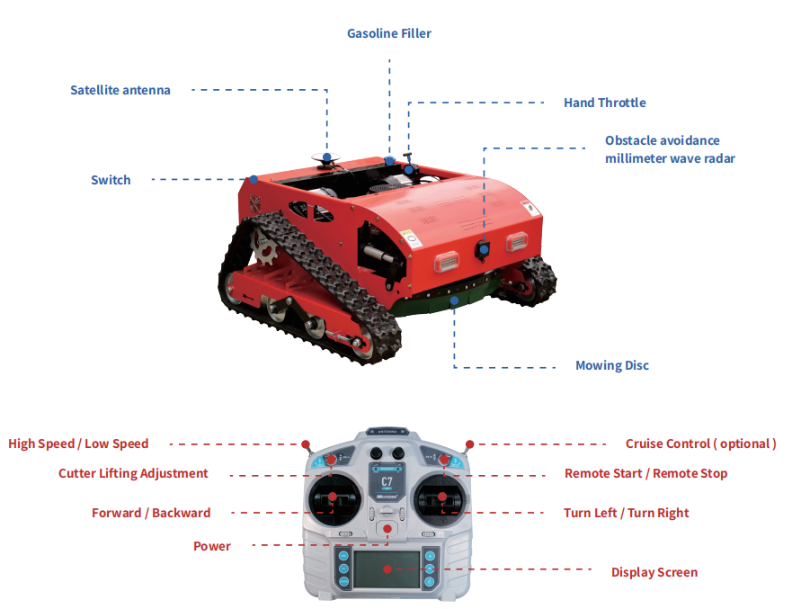 ・GNSS高精度ナビゲーションと自動制御技術を統合した高精度なハイブリッドシステムを搭載した草刈りロボットです。