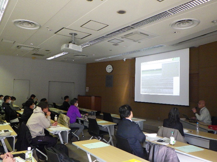 農研機構 農業機械研究部門が開発したAIロボット除草機や両正条田植え機※など最新の研究事例の講義及び実機の見学、施設内のショールームの見学や参加者の感想発表等を行いました。